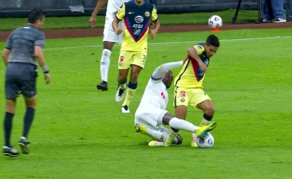 Cuando el jugador colombiano se tiró por atrás, con la rodilla cayó sobre el tobillo del canterano americanista. lo que provocó que se le doblara y terminó por romperle el peroné.