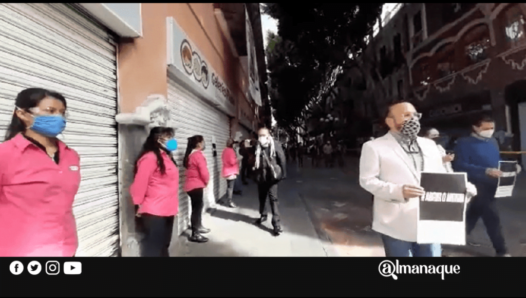 #AbrirOMorir: Con silbatazos, comerciantes exigen reapertura de negocios en Puebla