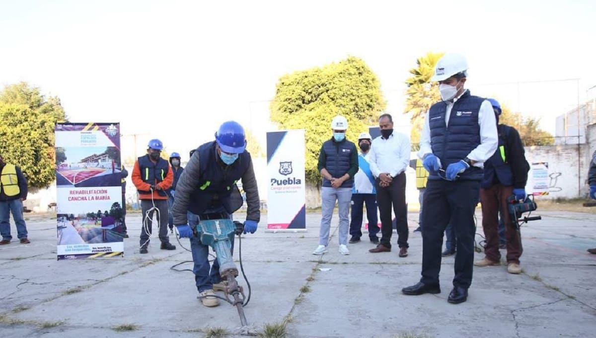 Con la intervención en la cancha La María, Eduardo Rivera Pérez, Presidente Municipal de Puebla, puso en marcha el Programa de Mejoramiento de Espacios Públicos, iniciativa que busca rehabilitar recintos de esparcimiento, deporte e integración social.